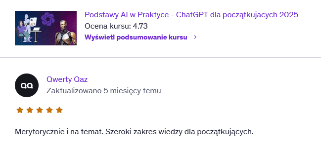 Chcesz samodzielnie stworzyć sklep online, automatyzować procesy lub dowiedzieć się, jak wykorzystać AI w biznesie E-commerce? Oferuję kursy obejmujące praktyczne zastosowania sztucznej inteligencji w biznesie.